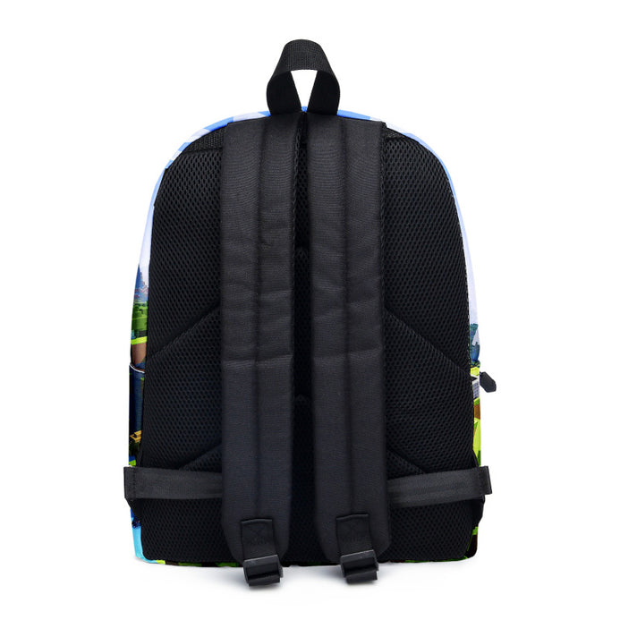 Ghiozdanul acesta a fost creat pentru fanii jocului Minecraft. Modelul cu motiv grafic al celor mai populari eroi pixeli se imbina cu functionalitatea ghiozdanului, fiind foarte dorit si apreciat de copii, adolescenti sau pasionati de gaming. Acesta are compartimente cu fermoar, special adaptate pentru rechizitele scolare necesare. Se potriveste usor in el un dosar, laptop, caiete, cutie pentru pranz, penar si carti. Interiorul este organizat astfel incat sa ramana spatios dar, in acelasi timp, ergonomic. Fiecare ghiozdan este dotat cu doua buzunare elastice exterioare pentru sticlele de apa, umbrela, incarcator, dezinfectant, servetele, etc.