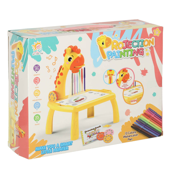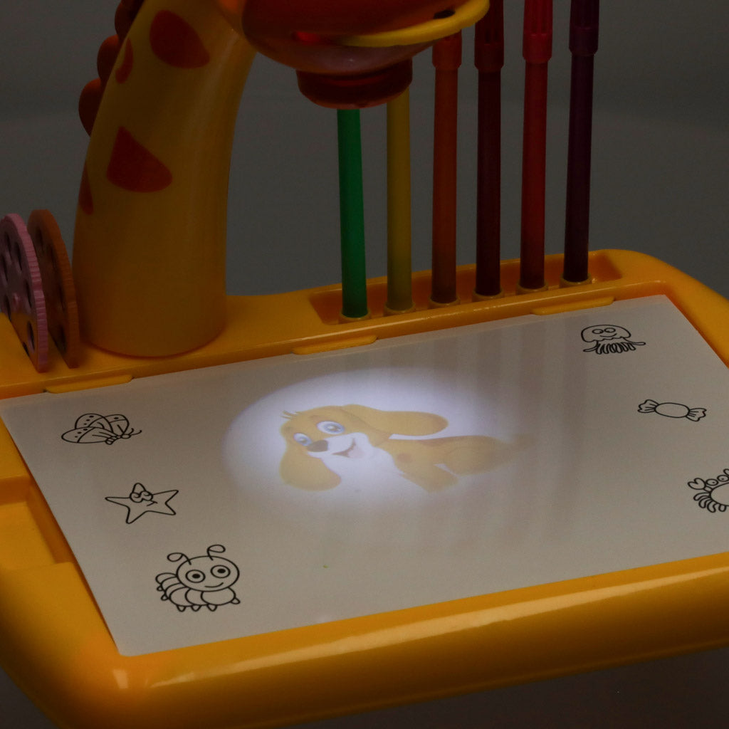 Masuta de desen pentru copii, cu proiector Girafa, 3 discuri si 12 markere colorate - Jucarie creativa ce stimuleaza imaginatia si indemanarea, 3+ ani.