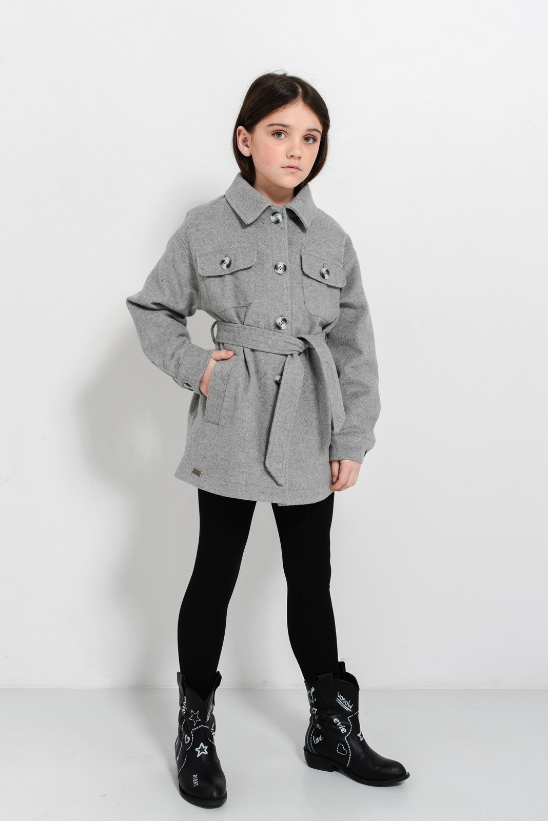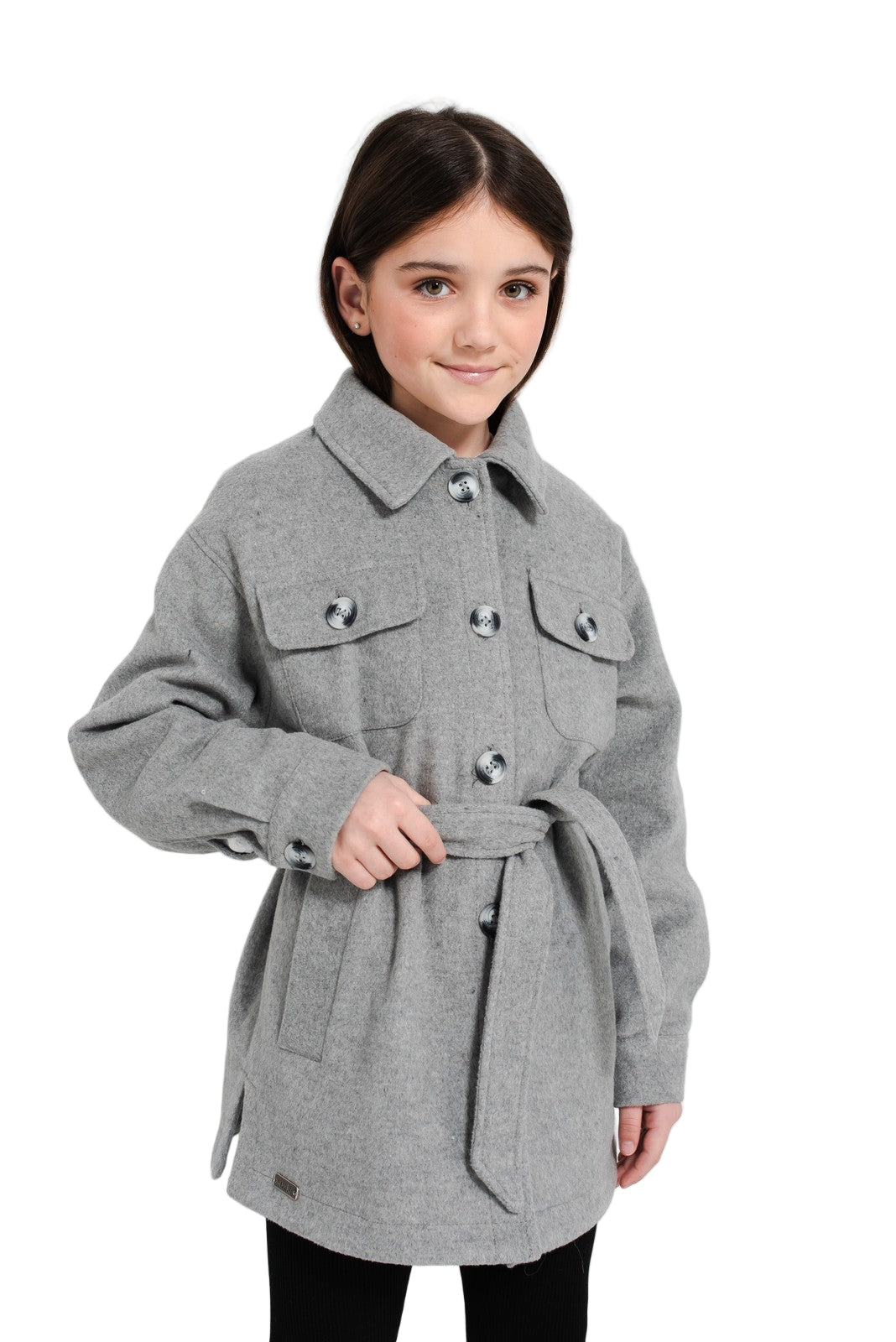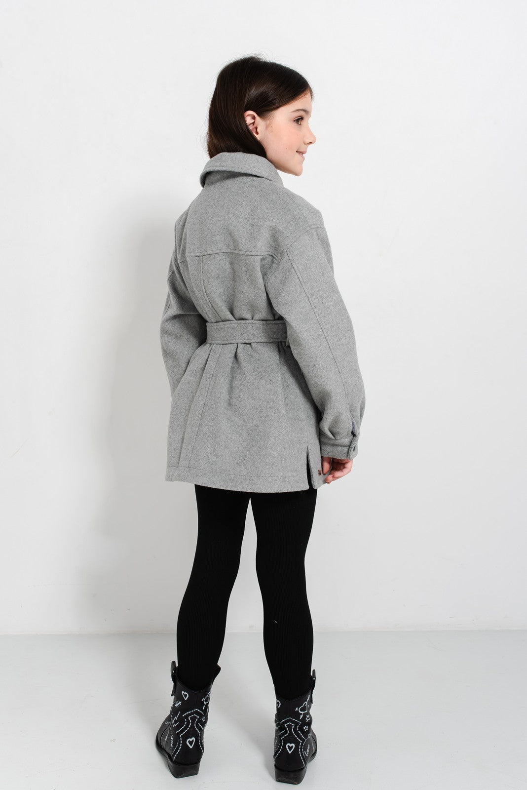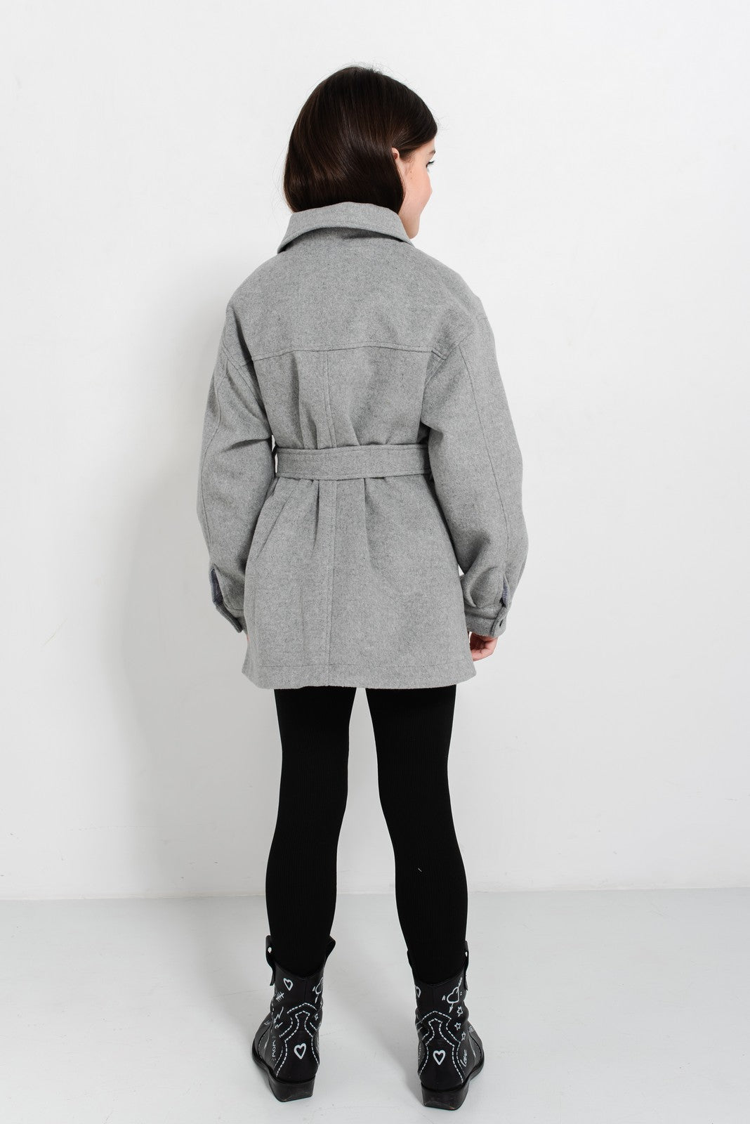 Palton pentru fete, realizat din stofa tip cashmere croi elegant, cordon reglabil si buzunare functionale - perfect pentru tinute de toamna si zilele reci de primavara.