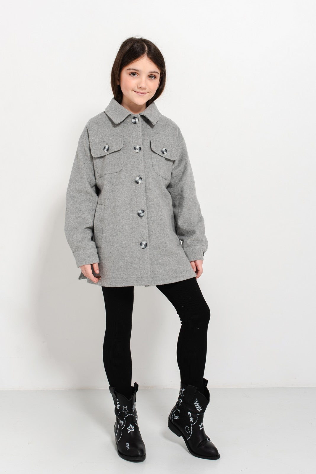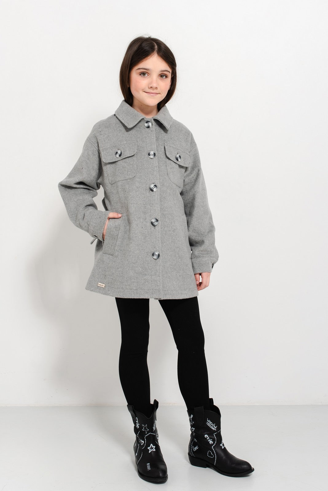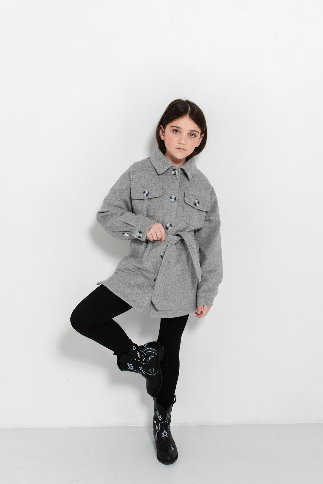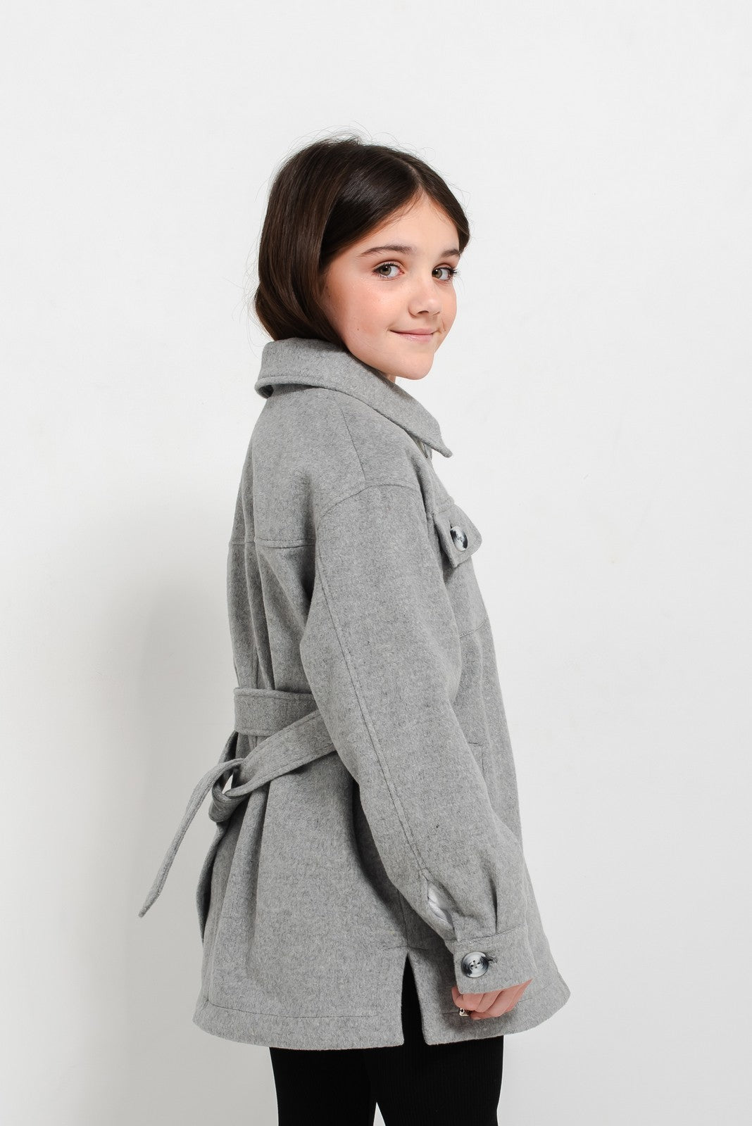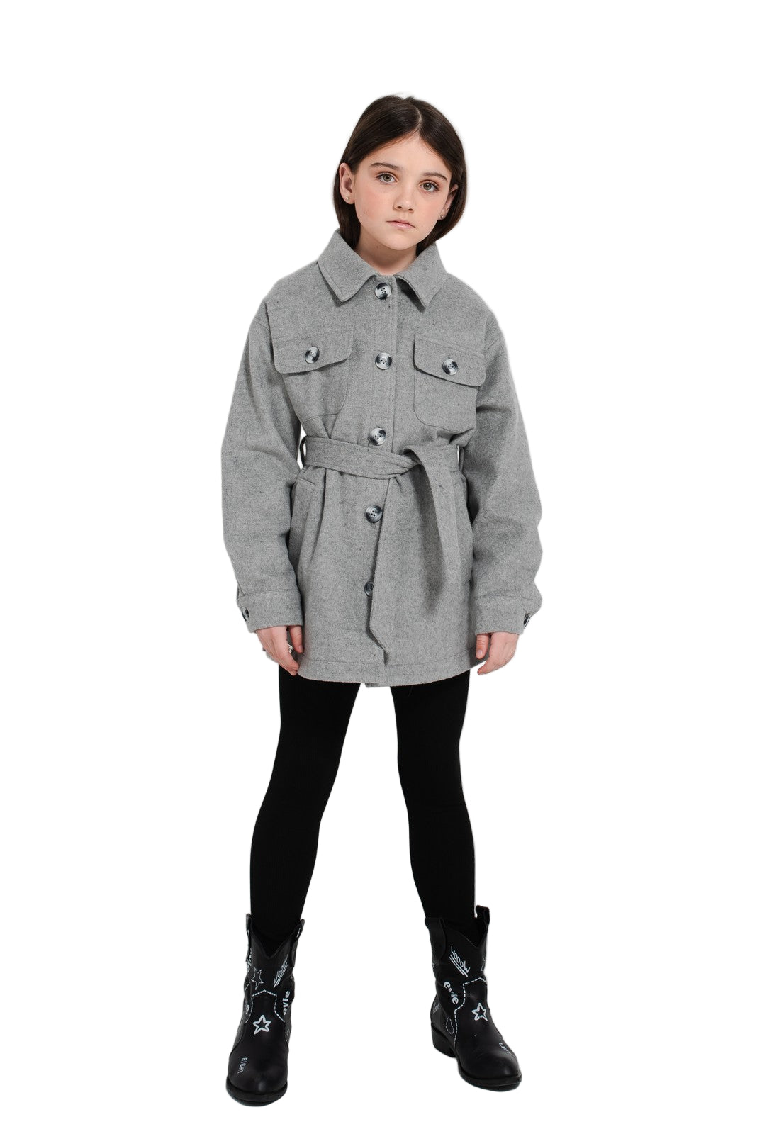 Palton pentru fete, realizat din stofa tip cashmere croi elegant, cordon reglabil si buzunare functionale - perfect pentru tinute de toamna si zilele reci de primavara.