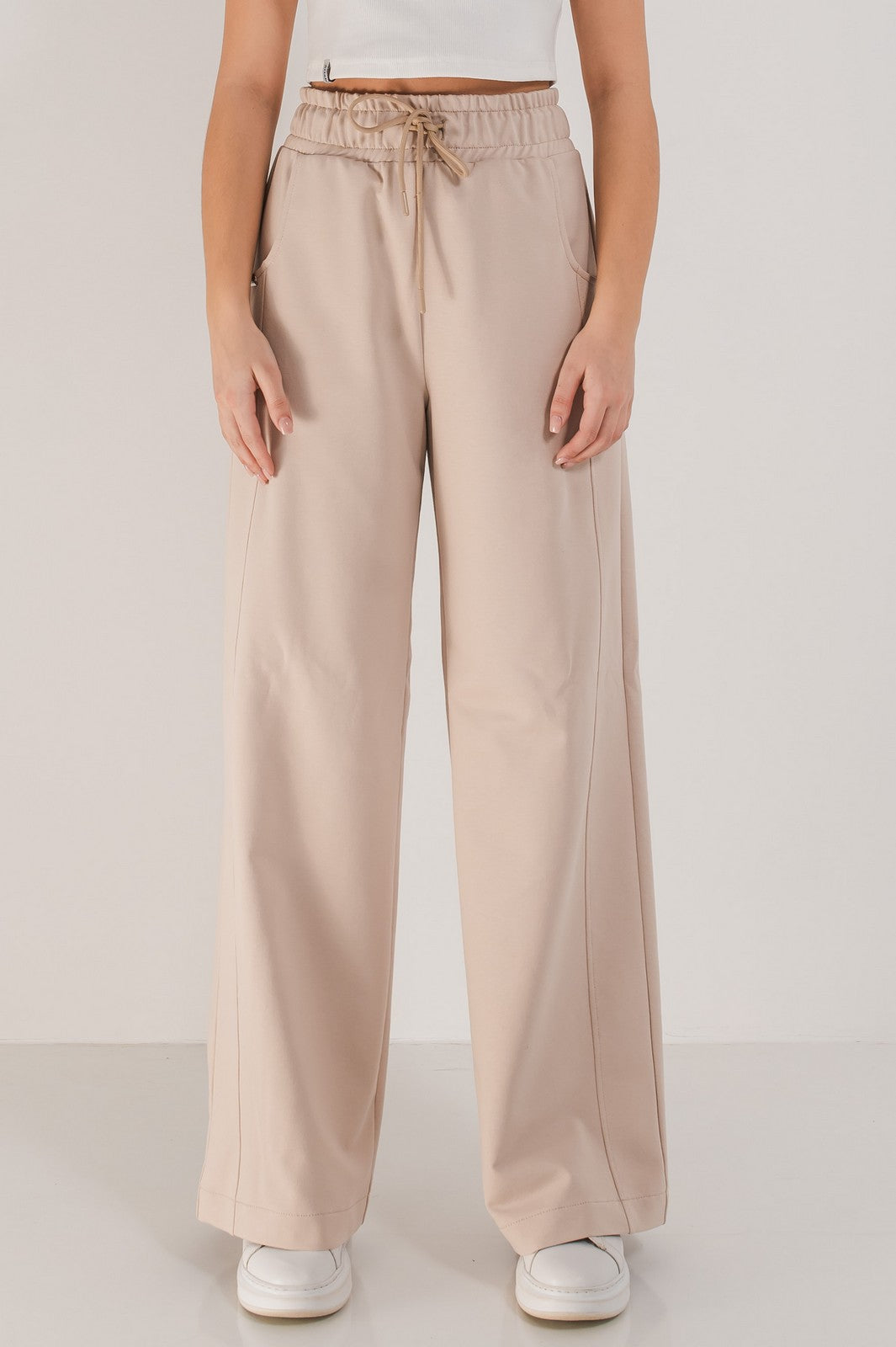 REINA - Trening din bumbac premium cu hanorac si pantaloni evazati, bej