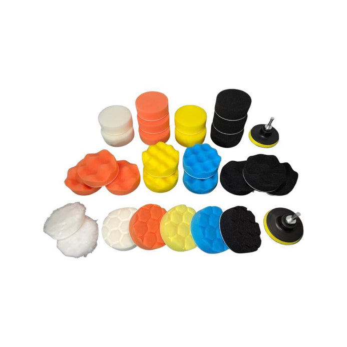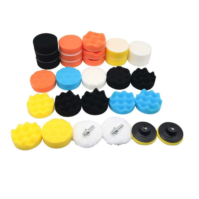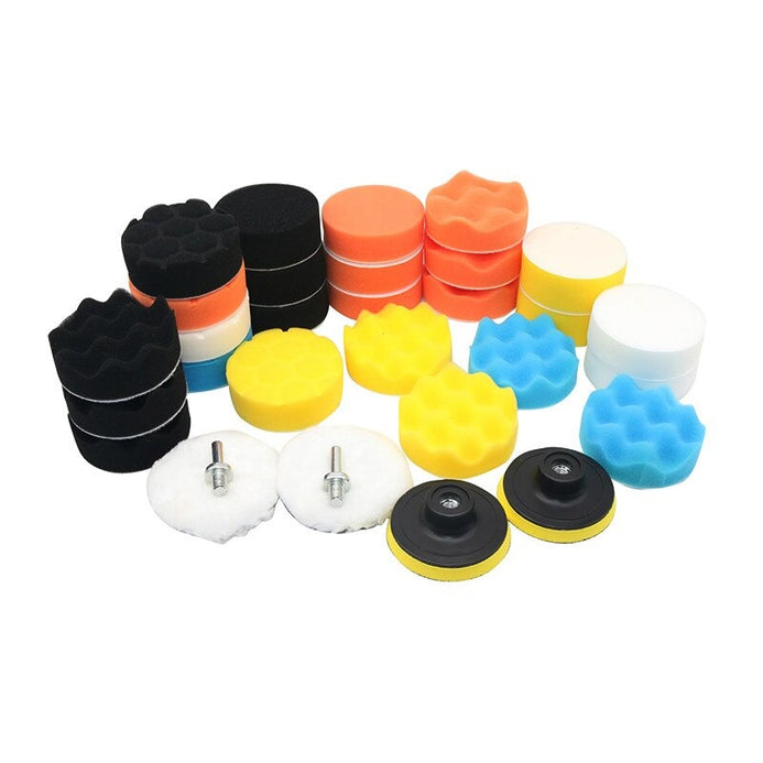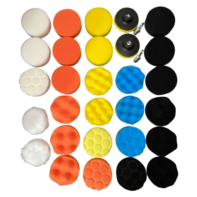 Set 31 piese polish auto profesional cu talere M14, kit discuri de burete, lana si adaptoare pentru bormasina