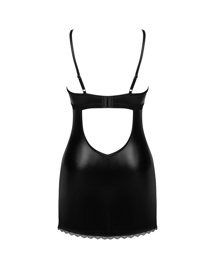 Set de lenjerie intimă Norides – rochie din vinil cu dantelă, decolteu sexy și chiloți tanga XL/2XL, negru