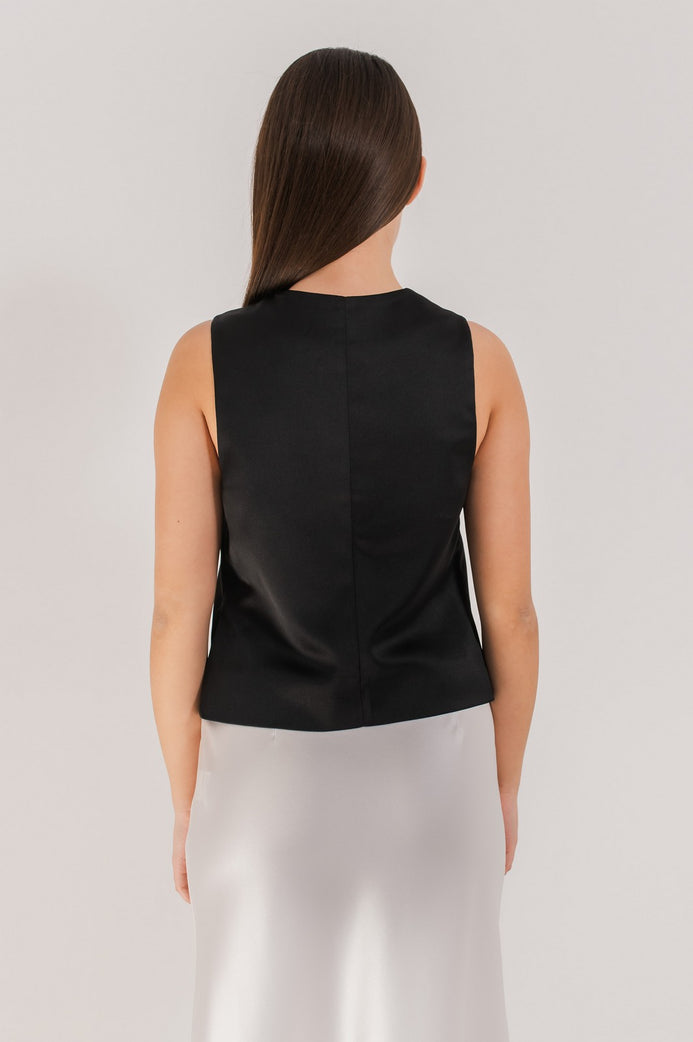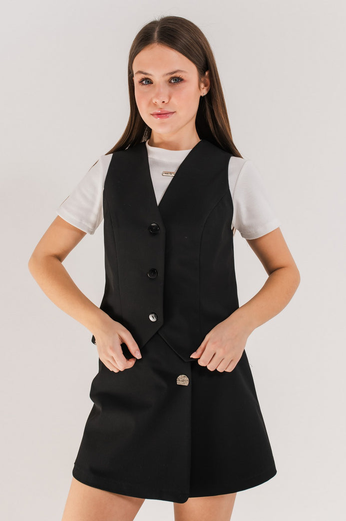 YASMINA - Vesta din stofa cu model clasic pentru uniforma scolara de fete, negru