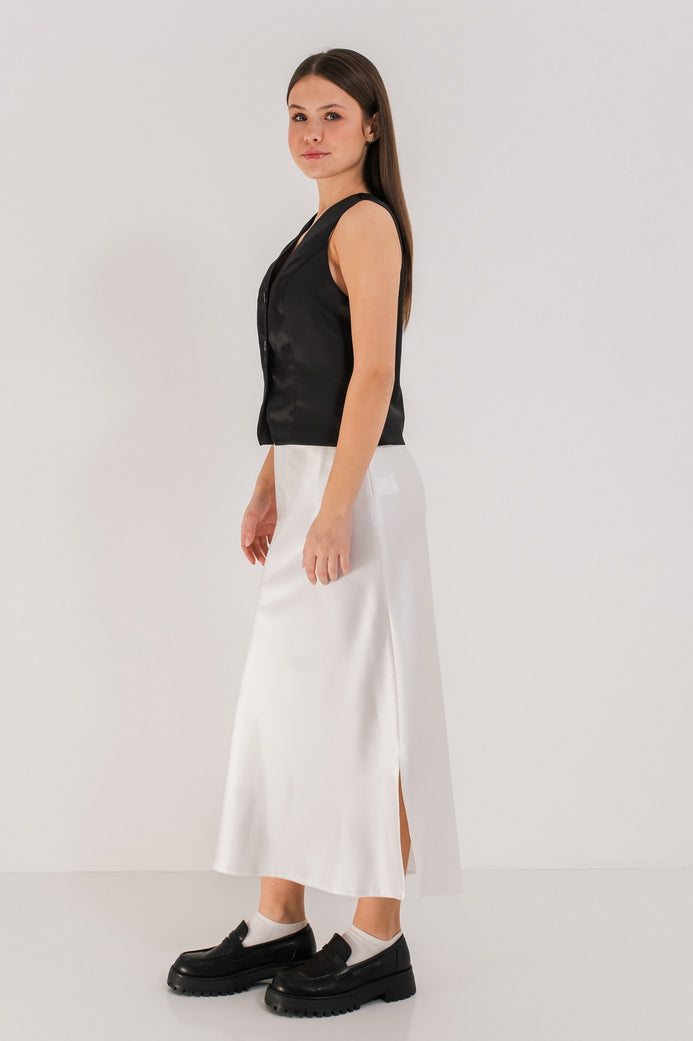 Vesta completeaza perfect tinuta de scoala si nu trebuie sa lipseasca din garderoba fetitelor. Croiul semi-ajustat si cusaturile fine subliniaza talia, iar decupajul frontal in V adauga eleganta. Inchiderea cu nasturi ii ofera un plus de functionalitate iar materialul fin pastreaza forma si aspectul impecabil chiar si dupa purtari multiple. Poate fi purtata peste camasi sau bluze si e poate asorta cu fuste, pantaloni clasici, pantaloni casual si skort. Se potriveste perfect cu modelul de fusta/pantalon Namiri din aceasi gama si se poate forma set cu aceasta.