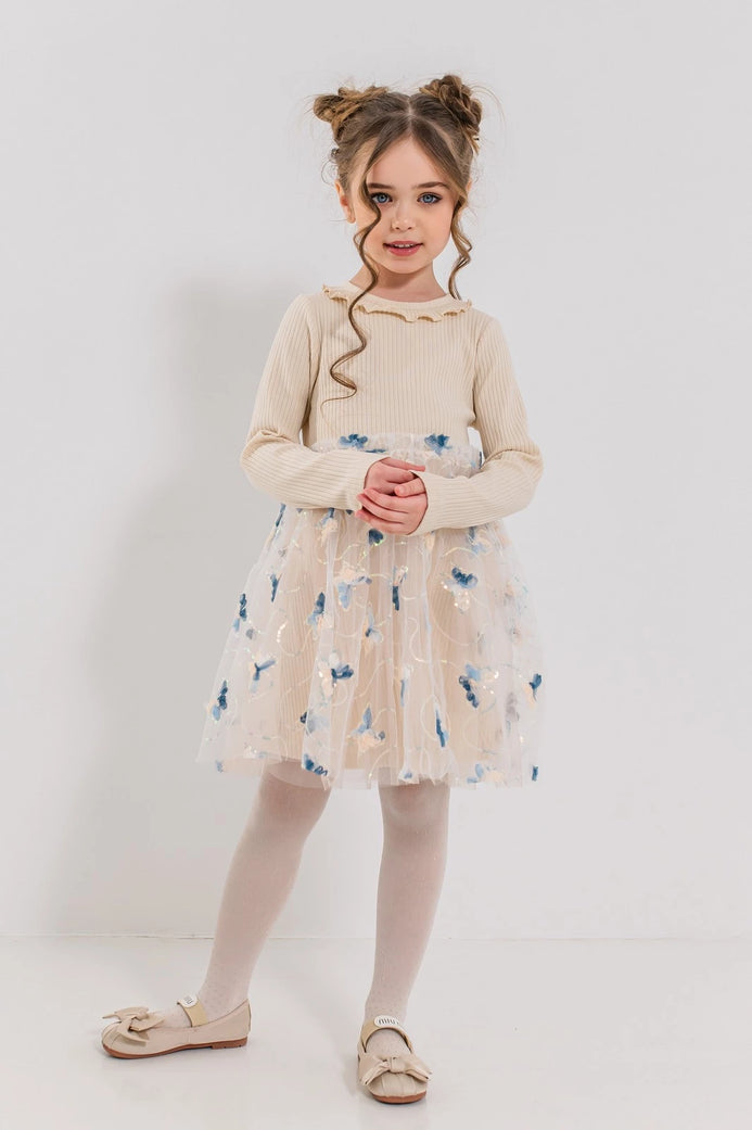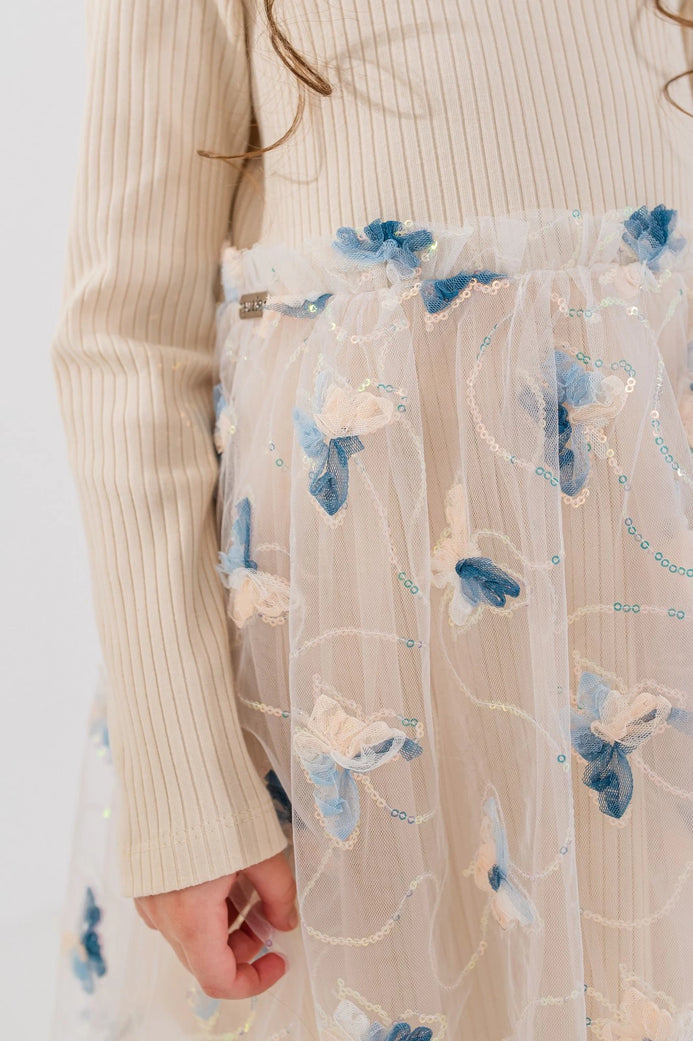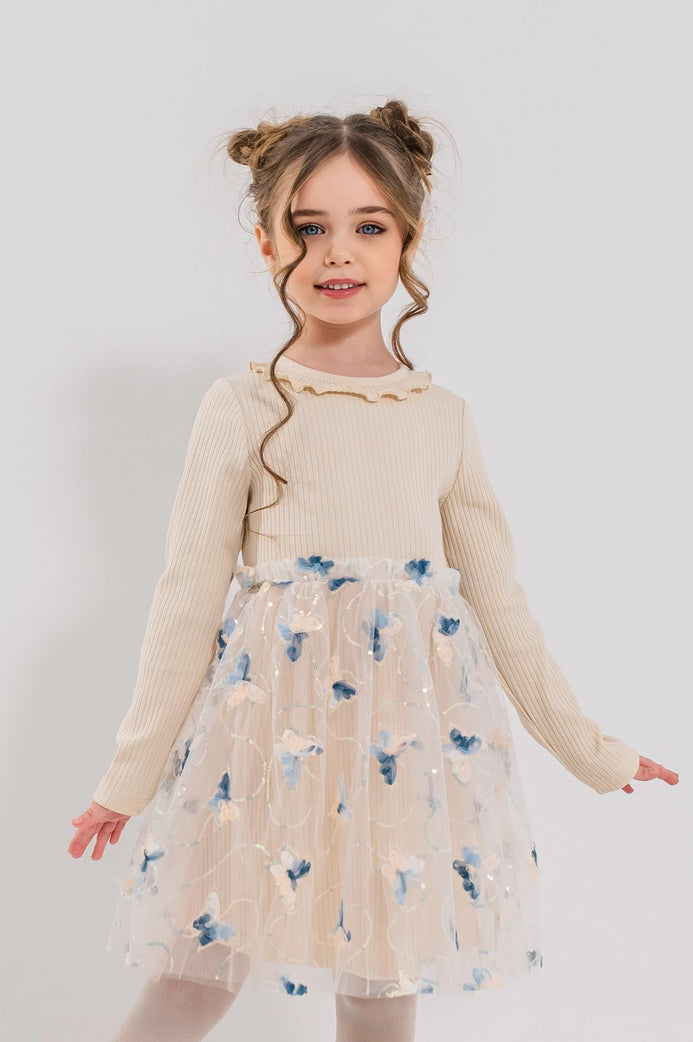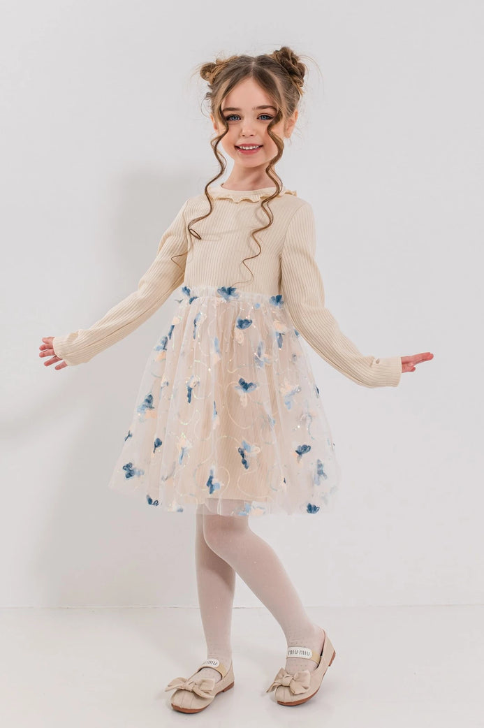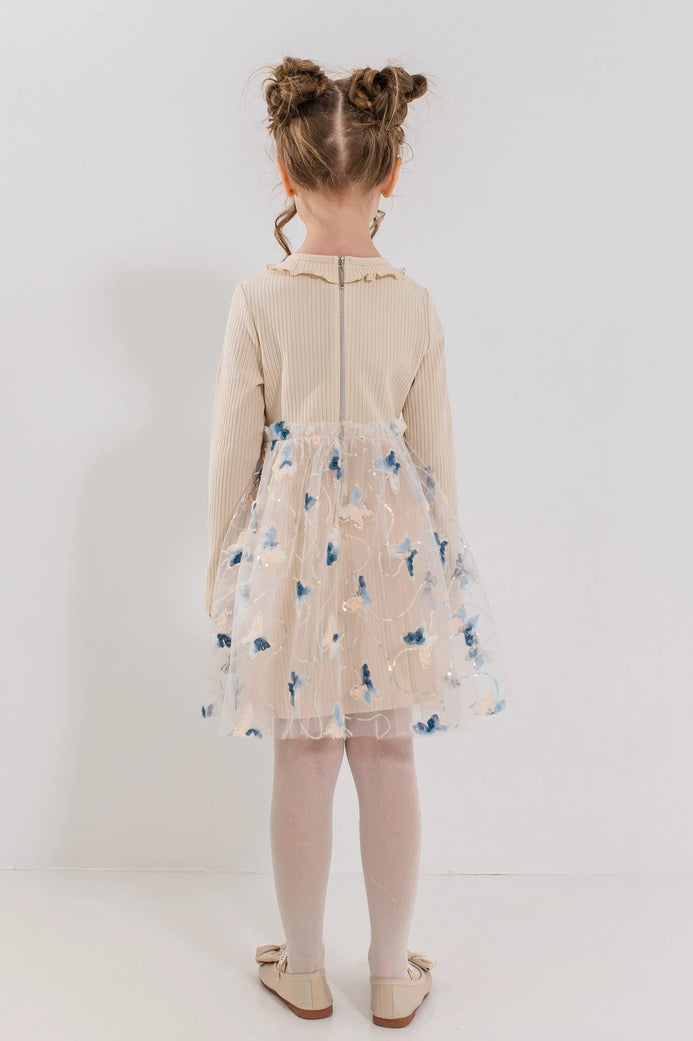 ZHUZHANNA - Rochita eleganta din bumbac cu tulle brodat si fluturasi, bej